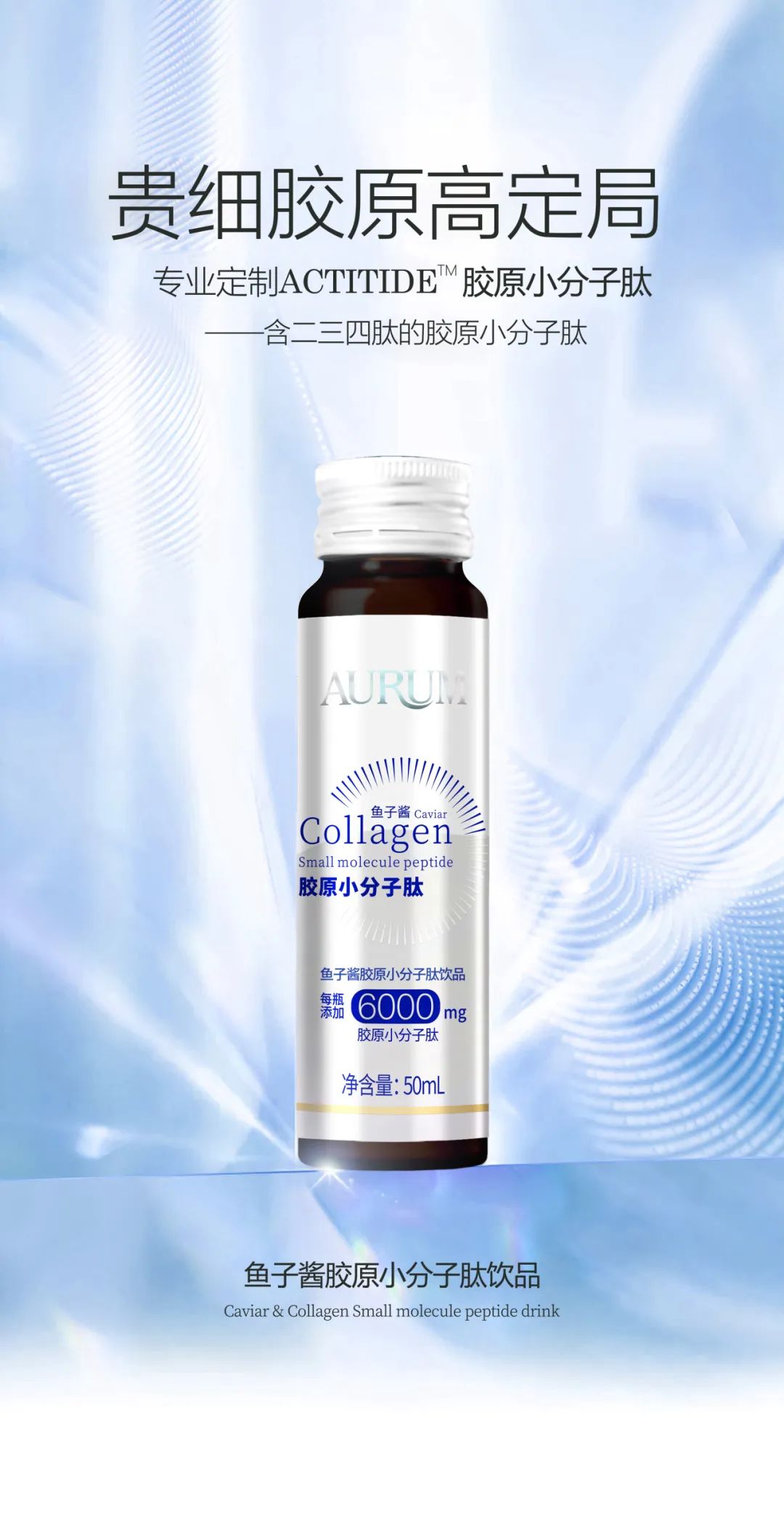 鱼子酱胶原小分子肽饮品 专业定制胶原&专利美白后生元 复合配方 多重效果 创新包装 高端便捷 先进工艺 极易吸收 三相抗衰,深入细胞,紧塑黄金视觉6大区,焕活年轻态 每天一瓶,抚平岁月痕迹! 改变无需犹豫,时间自会给出答案