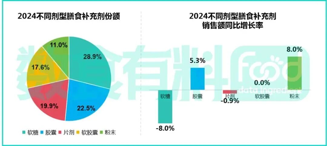 13 决胜终端,不止于成分, 三大制造趋势重塑消费体验 在探讨完各大热门赛道的成分创新之后,我们必须将目光转向幕后。 在2026年,如何制造、如何送达、如何赢得信任,将与添加了什么成分同等重要。对于品牌而言,决胜终端的竞争,已经从单一的原料比拼,升级为关乎个性化、体验感和信任度的系统性战争。 1、个性化浪潮,从“千人一面”到“千人千面” 真正的个性化,即基于DNA、微生物组分析和AI推荐的一人一方仍是未来的愿景,尚未在行业内实现大规模商业化。 然而,准个性化的浪潮已经到来。当下的主流实践,是基于精准人群的空白需求进行产品创新。这并非遥不可及的科技,而是更考验品牌市场洞察力的战略选择。与其追逐尚不成熟的AI概念,不如回归商业本质,聚焦人口特征、聚焦生活方式、聚焦特定健康状况,开发满足特定人群目前未被满足需求的产品。 FDL数食有料认为,现阶段最务实的个性化策略,就是切分市场,找准白地。与其服务一千万个模糊的用户,不如深度服务好十万个需求明确的精准用户。 2、剂型之战,软糖“退烧”,粉剂与胶囊的复兴 产品的剂型,直接决定了消费者的使用体验和品牌感知。SPINS的最新数据揭示了一场正在发生的、深刻的剂型市场格局变迁。