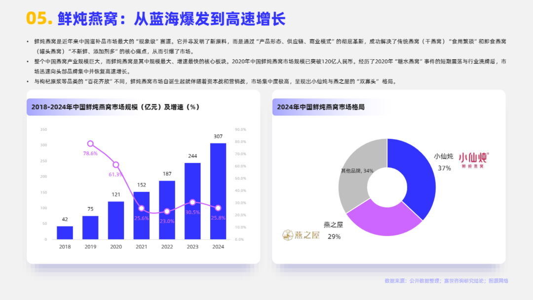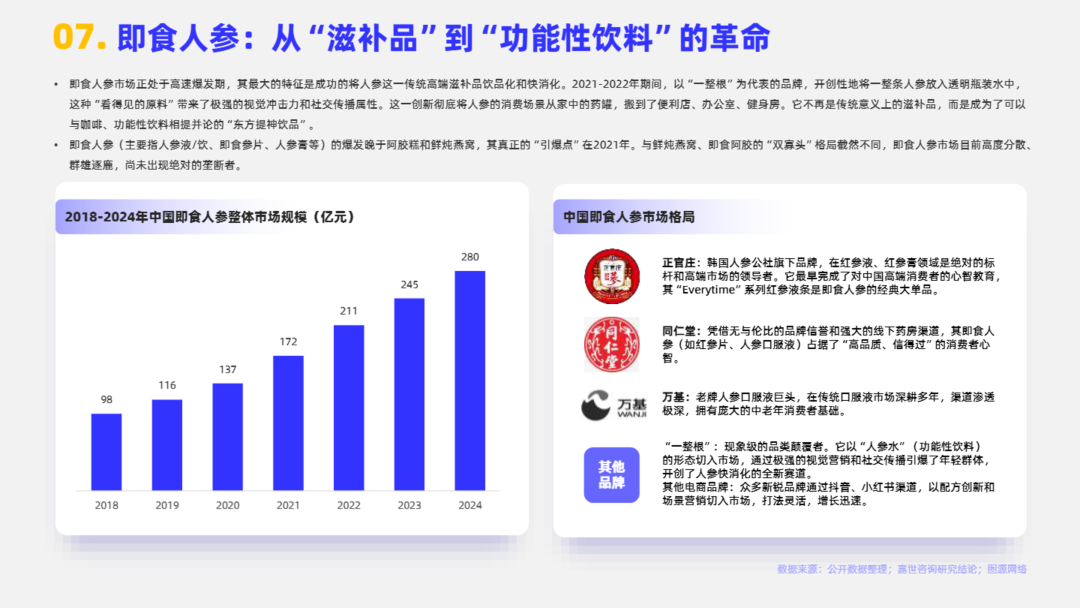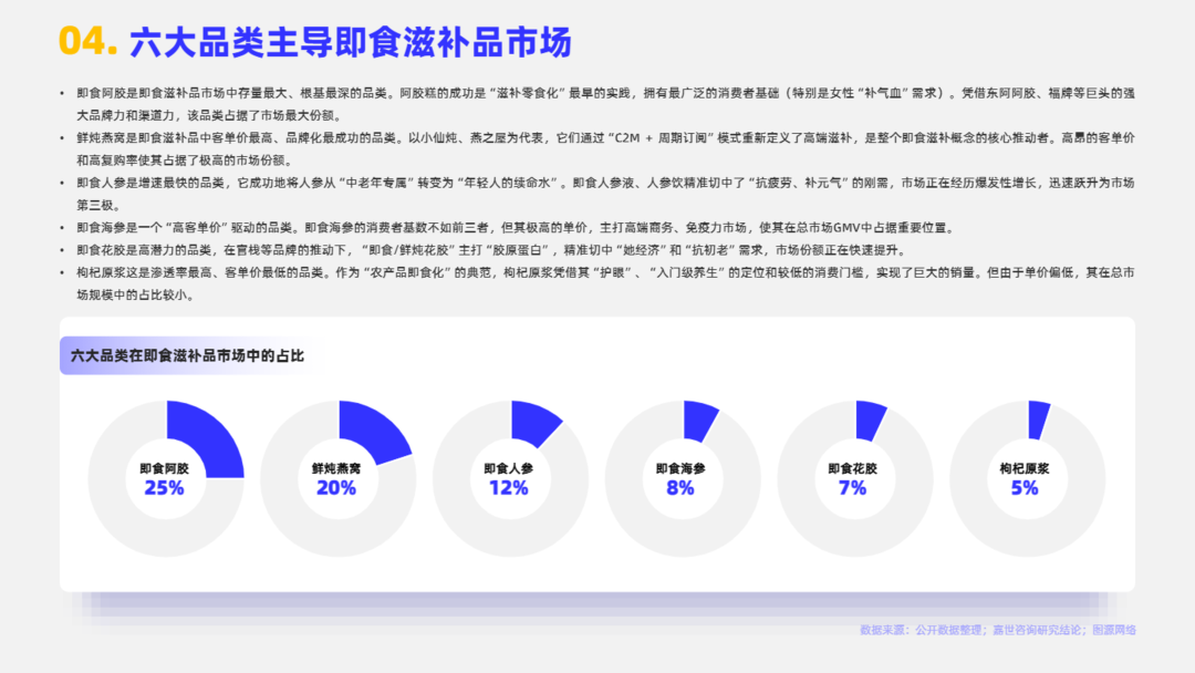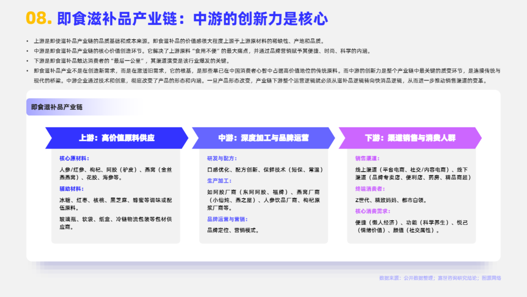 即食滋补品通常指的是那些以传统中医药“食补”理念或营养学原理为基础,选取具有滋补或保健功效的食材(如药食同源物质、传统滋补品等),经过现代工艺加工制成,可直接开封食用或简单冲泡/加热即可食用的产品。目前市场中即食滋补品的核心特征包括以下三点:滋补/保健功效、即食性/便捷性、零食化趋势。本报告将系统性阐述2025即食滋补品行业发展情况。