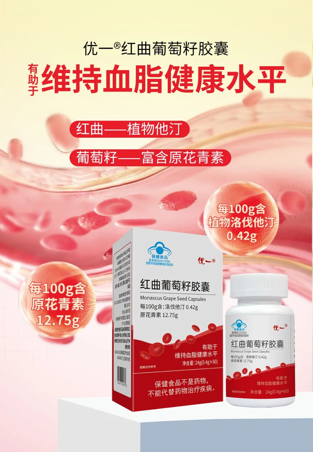 优一?红曲葡萄籽胶囊——专利红曲+高含量葡萄籽,双效合一,守护血脂健康!
