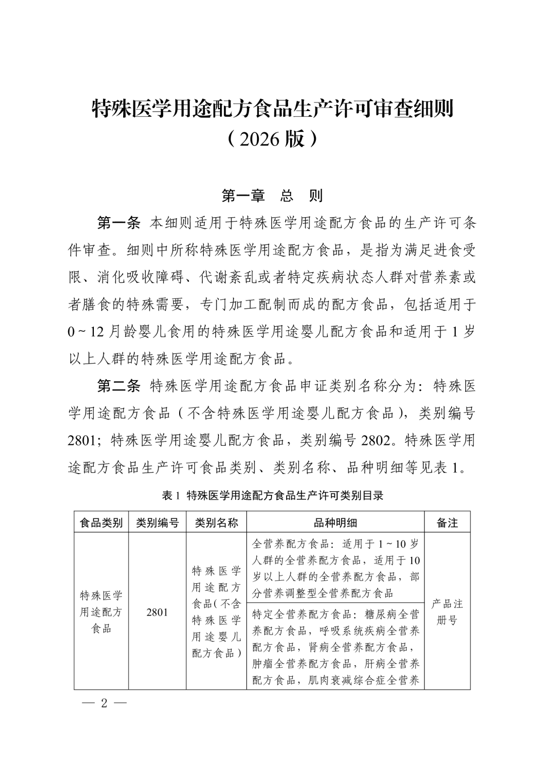 以下为《特殊医学用途配方食品生产许可审查细则(2026版)》部分内容,完整内容请访问国家市场监督管理总局官方网站。
