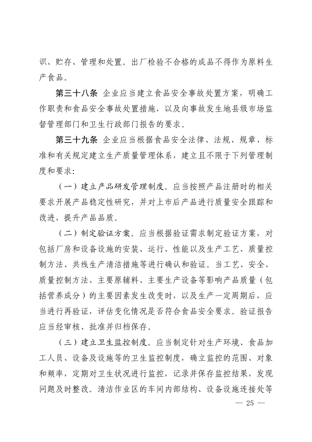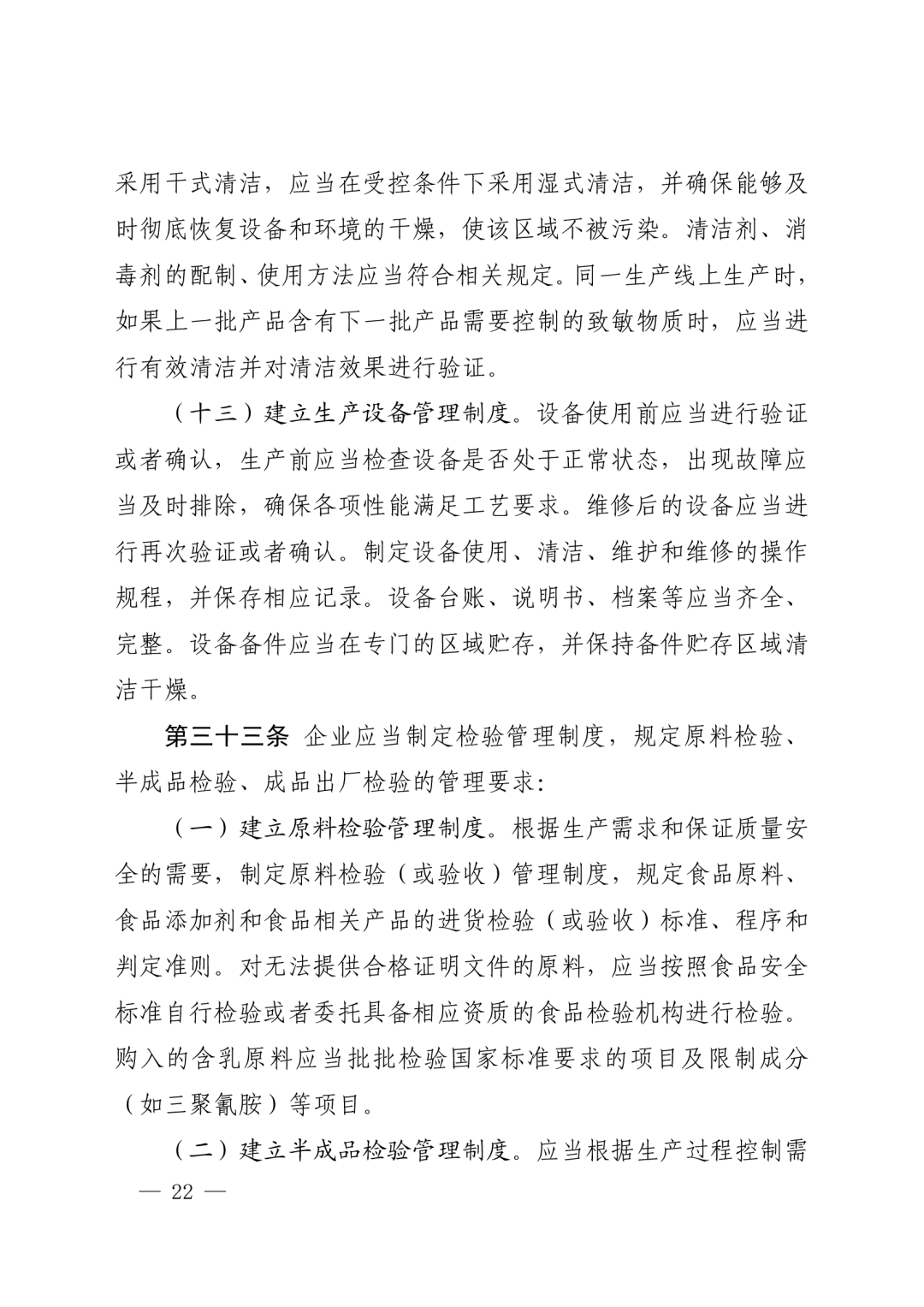 《细则》共7章43条,从生产场所、设备设施、工艺流程、人员管理、制度管理等方面进行严格要求,主要修订了以下内容:一是按照2025版特医食品标准的产品分类,调整细化生产许可品种明细;二是按照2023版特医食品良好生产规范,进一步明确作业区环境卫生控制要求和关键设备监控要求;三是按照新修订的《食品生产经营企业落实食品安全主体责任监督管理规定》,细化关键人员岗位职责;四是针对产品适用人群及其过敏风险管理需求,强化产品过敏风险管控;五是结合出现的食品安全风险以及储运等最新要求,进一步严格原料管理。