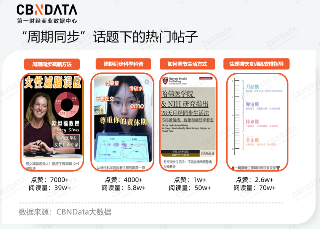 在月度周期的微观层面,顺应女性生理周期进行饮食、运动与健康习惯安排的“周期同步”(Cycle Syncing)正具体地成为女性开始思考生活计划的参考因素之一,近30天内该关键词相关内容在小红书平台内的浏览量超100万,同比增长42.7%。