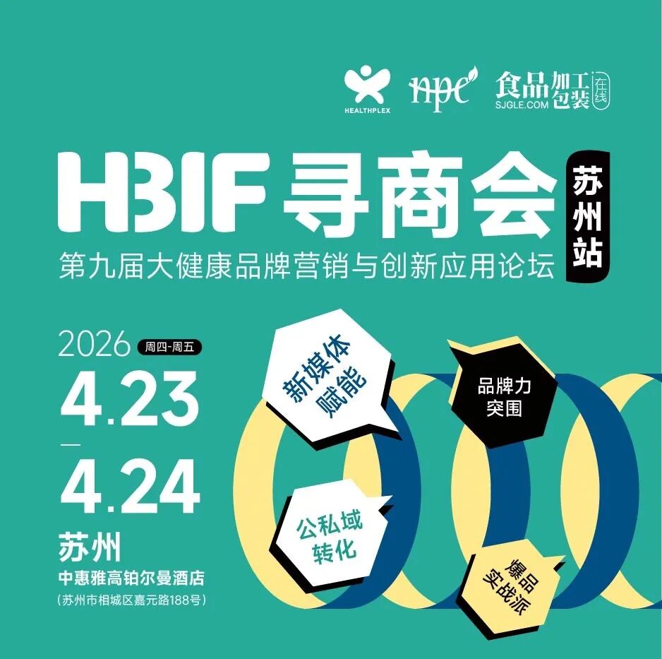 HBIF寻商会苏州站——第九届大健康品牌营销与创新应用论坛,即将于2026年4月23至24日在苏州中惠雅高铂尔曼酒店重磅举行!本次论坛将以“聚势破局·共探大健康产业增长新路径”为主题,深度拆解2026大健康最新行业趋势与风口赛道,同时分析品牌爆款打造思路以及全域社媒运营实操,让您看懂2026行业趋势,助力企业实现营销增长!