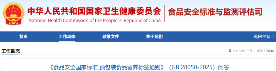 《食品安全国家标准 预包装食品营养标签通则》(GB 28050-2025)问答