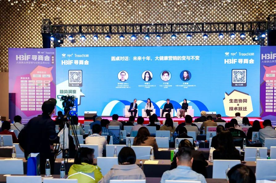 作为寻商会南京站第一天的压轴环节,“未来十年,大健康营销的变与不变”圆桌讨论在肖明超的主持中展开。他与威海百合生物技术股份有限公司产品经理李晨杰、华润三九消费者品牌部总经理于子桓、卡得万利健康科技产业集团有限公司总经理王丽威三位圆桌嘉宾,对流量红利消退后,健康品牌如何构建长效竞争力以及AI是否将重塑健康消费体验两大问题进行圆桌讨论。