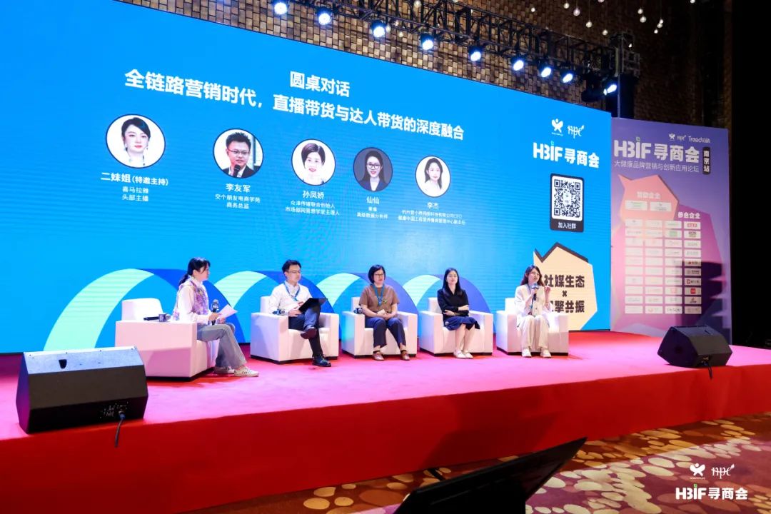 随后,在二妹姐的主持下,交个朋友电商学苑商务总监李友军、众泽传媒联合创始人/市场部网营想学堂主理人孙凤娇、果集高级数据分析师仙仙,以及杭州营小养网络科技有限公司CEO、健康中国工程营养慢病管理中心副主任李杰共同开启了圆桌对话“全链路营销时代,直播带货与达人带货的深度融合”。