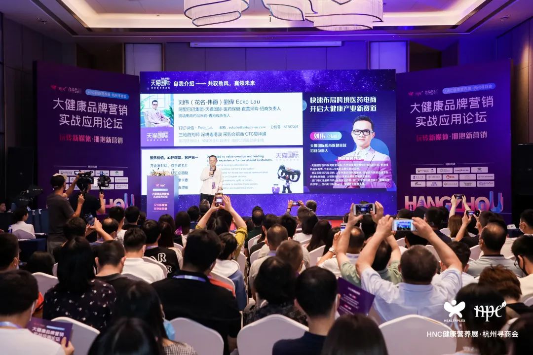 天猫国际医药招商及港澳线采购负责人刘伟(伟爵)先生在论坛上和大家介绍了其赛道优势、平台特色,分享了To C的3个主打营销IP:保健膳食的第四餐、国际医药的紫药箱,和天猫国际官方自营店铺健研馆,以及如何持续助力企业深耕医药保健赛道。天猫国际医药保健致力于打造消费者首要考虑的进口医药保健服务平台,同时成为海外企业进入中国初次尝试的优选渠道,也是企业孵化新品的优质渠道,为用户健康和商家品牌提供多样化的进口解决方案。刘伟先生从多维度的视角,提振了每位与会观众迈入健康产业或持续进阶的信心。