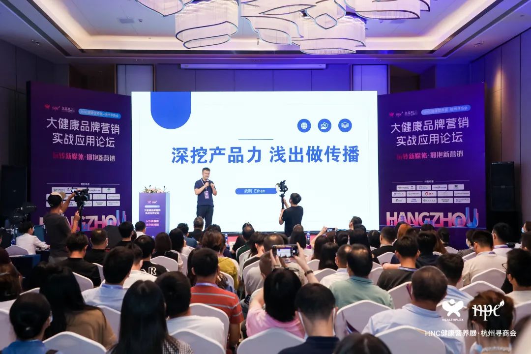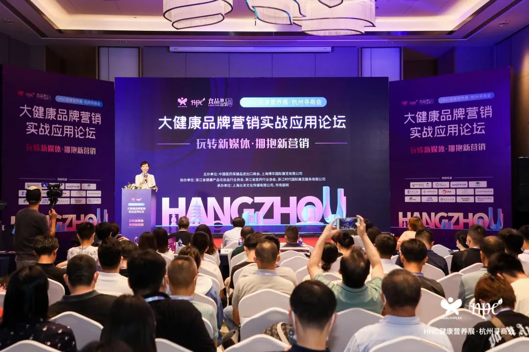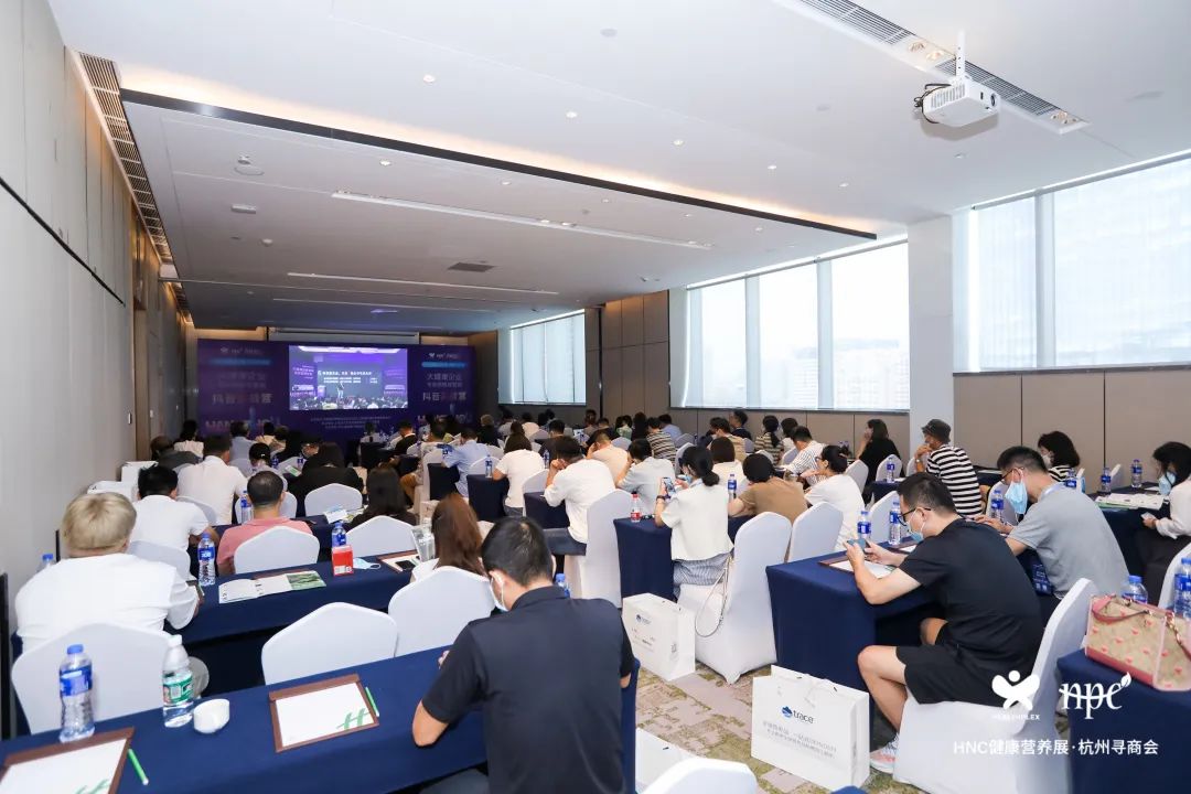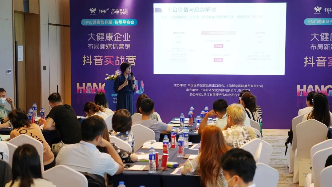 由中国医药保健品进出口商会和上海博华国际展览有限公司共同主办的HNC健康营养展杭州寻商会暨“2022大健康品牌营销实战应用论坛”、“大健康企业抖音实战营”(以下简称HNC杭州寻商会)于2022年8月25-26日在杭州龙湖滨江天街假日酒店拉开帷幕。第一天品牌营销实战应用论坛以“玩转新媒体,拥抱新营销”为主题,汇聚了营养保健食品行业300多位参会观众,聆听来自大健康产业不同领域的12位行业专家、品牌营销专家、优秀企业家代表等,以演讲、圆桌对话形式进行思维碰撞。嘉宾各抒己见,金句频出,帮助企业理解变局中必备的核心竞争力。8月26日抖音实战营汇聚了40多家大健康品牌企业参会学习,内容结合大健康行业案例,有效传递抖音实操干货,帮助大健康企业借助抖音风口,从0-1搭建企业账号、直播间,实现销售新增长。